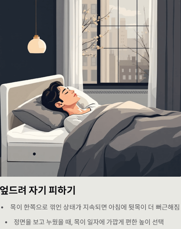 요약: 자세·베개 높이만 바꿔도 뒷목 부담이 크게 줄어듭니다.