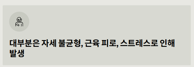 - 대부분은 자세 불균형, 근육 피로, 스트레스로 인해 발생