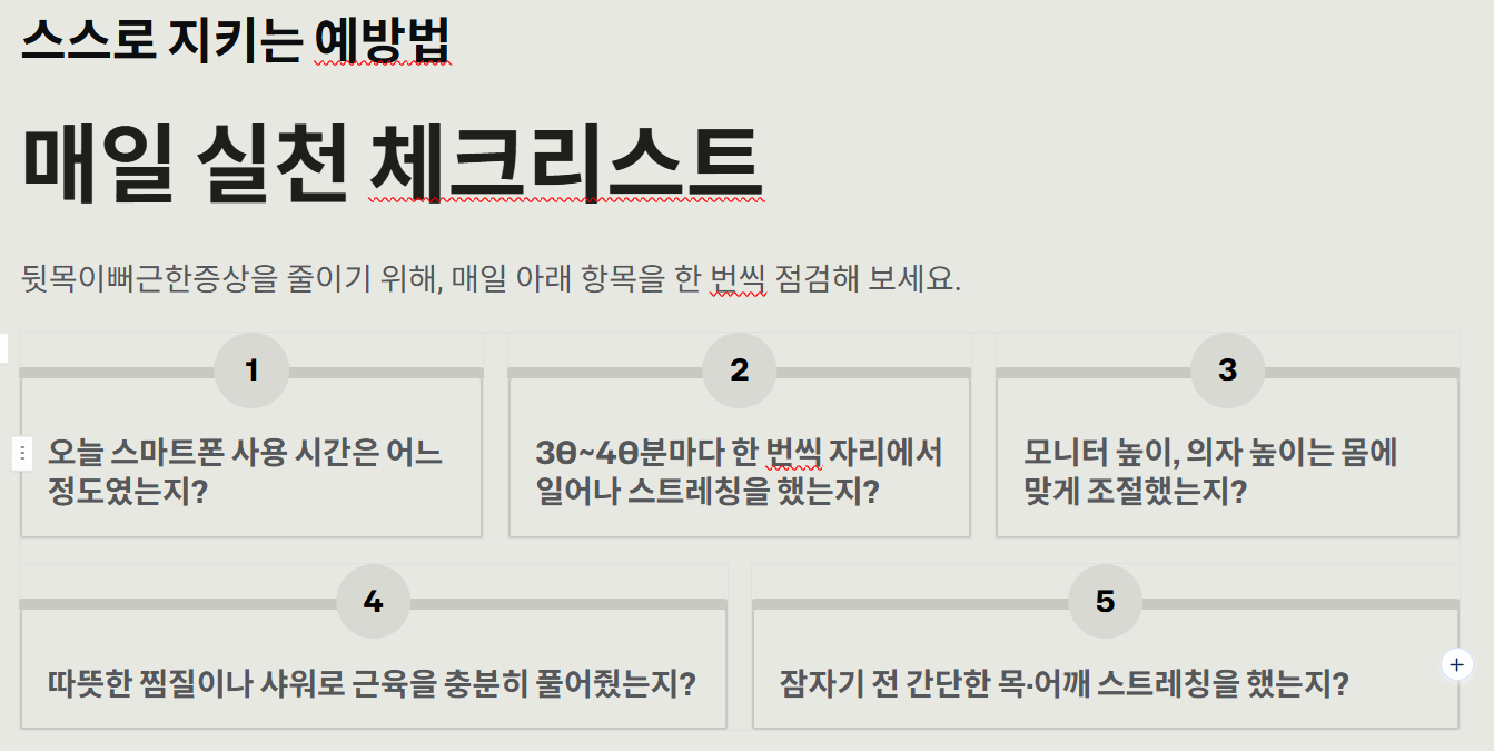 요약: 매일 체크리스트로 관리하면 뒷목 통증이 재발할 가능성이 줄어듭니다.