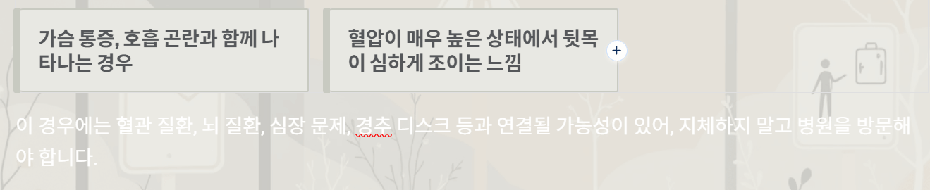 - 혈압이 매우 높은 상태에서 뒷목이 심하게 조이는 느낌