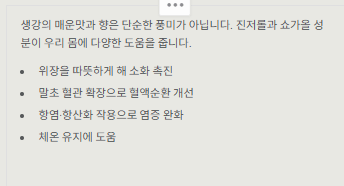생강의 매운맛과 향은 단순한 풍미가 아닙니다.