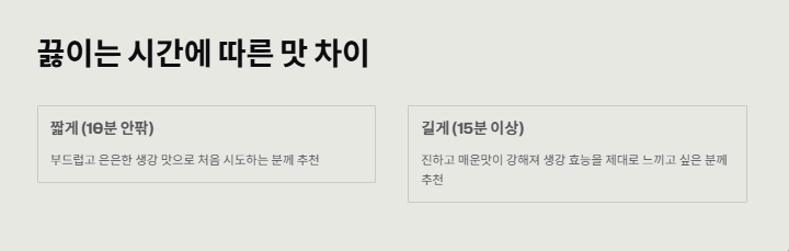 👉 끓이는 시간에 따라 맛이 달라집니다.