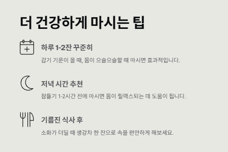- 하루 1~2잔, 꾸준히